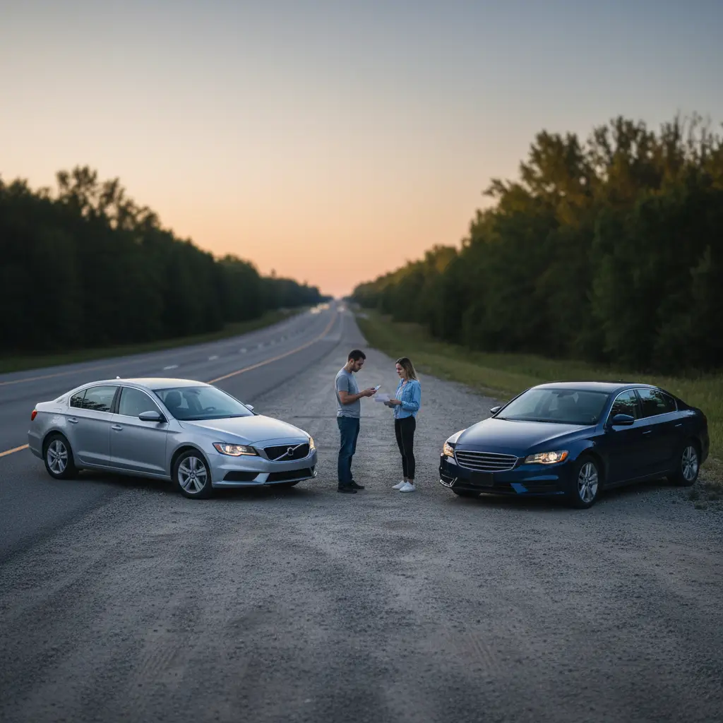 A calm roadside scene after a minor crash is usually where the insurance claim timeline begins.